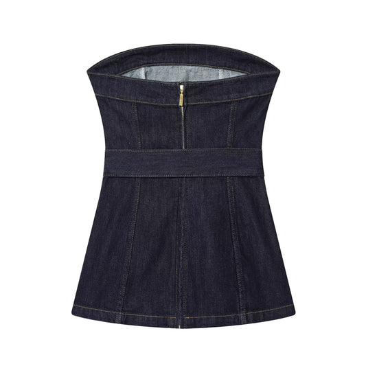 Dark Blue Strapless Denim Top