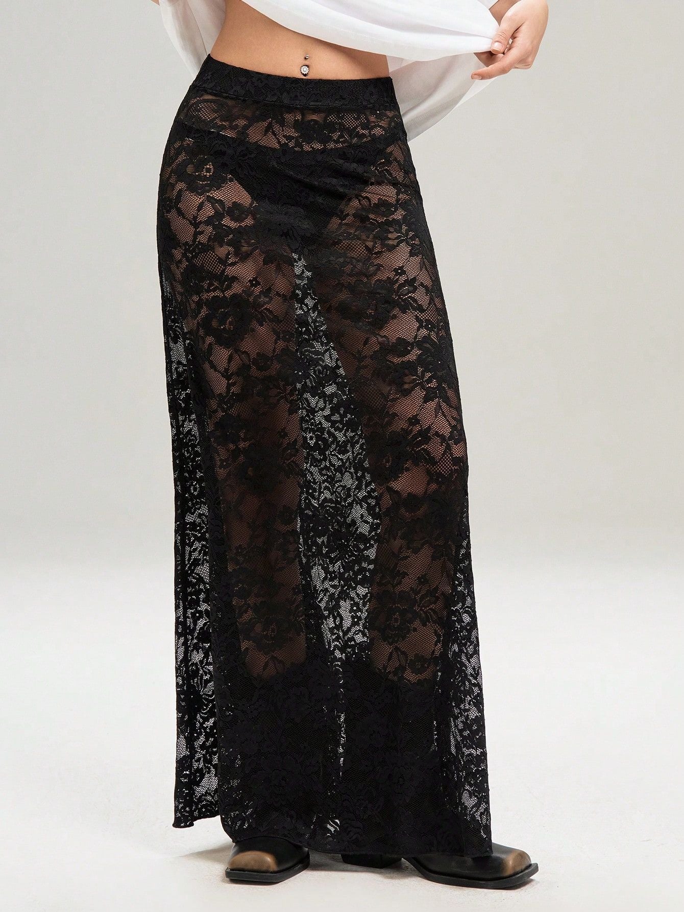 Black Sheer Lace Maxi Skirt